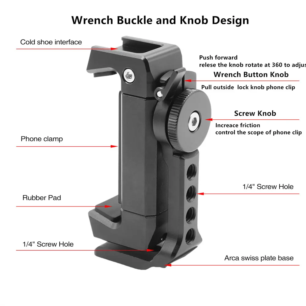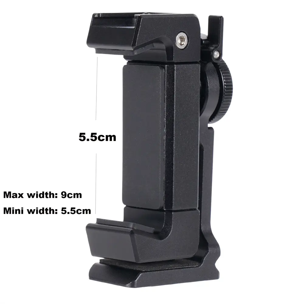 Suporte para Smartphone em Liga de Alumínio com Rotação 360° e Cold Shoe