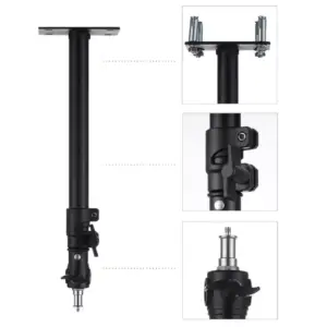 O Suporte Teto Stand de Iluminação WT812 Greika é um acessório projetado para fixação de iluminadores em parede, teto, mesa ou piso, permitindo melhor aproveitamento do espaço em estúdios fotográficos e de vídeo. Com estrutura ajustável e construção robusta, suporta equipamentos de até 6 kg, sendo compatível com diversos tipos de iluminadores e acessórios de estúdio.