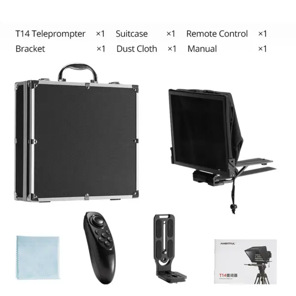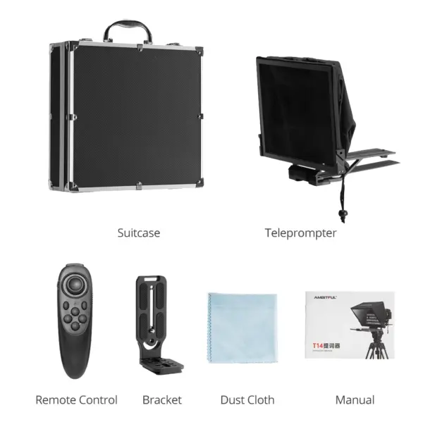 O Teleprompter AMBITFUL T14 foi desenvolvido para atender às demandas de profissionais e criadores de conteúdo que necessitam de um equipamento versátil e de alta qualidade para produções de vídeo ao vivo, gravações externas e transmissões profissionais.