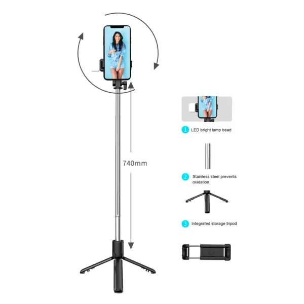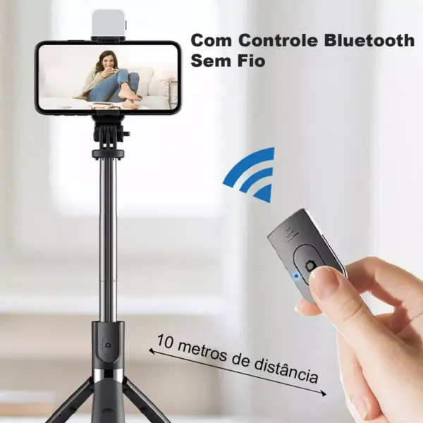 Versátil 3 em 1 – Tripé, bastão de selfie e serve também como estabilizador, além de possuir controle bluetooth