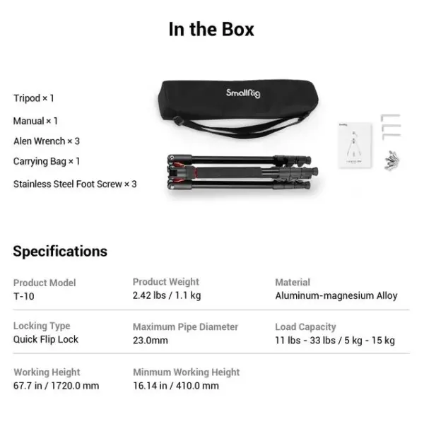 • 1x Tripé SmallRig CT-10 com Cabeça Esférica (BallHead)